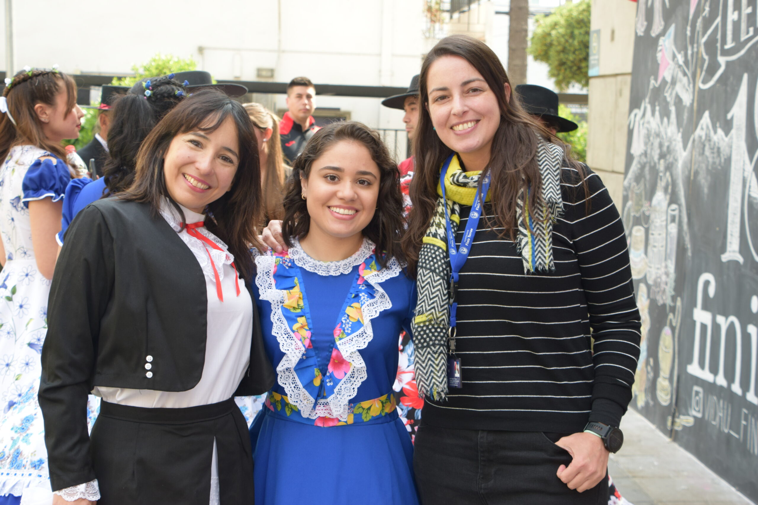 Charlotte Simon, estudiante de intercambio de Bélgica de Kinesiología; Milena Alves, vestida de “china” (Brasil, Enfermería), y Karla Pérez, de México, en Nutrición, se lanzaron a la pista de baile, ubicada en el patio central, junto a los demás participantes. Al principio con timidez, y luego con desplante, fueron aplicando las instrucciones de la profesora de Deportes, Carolina Andrade, para hacer los diferentes pasos, cepillado, zapateo, medialuna, y, por supuesto, las palmas que animan cualquier cueca.
