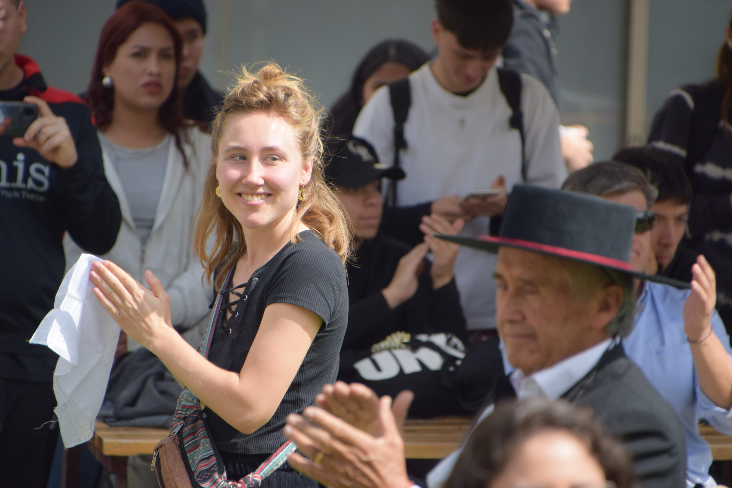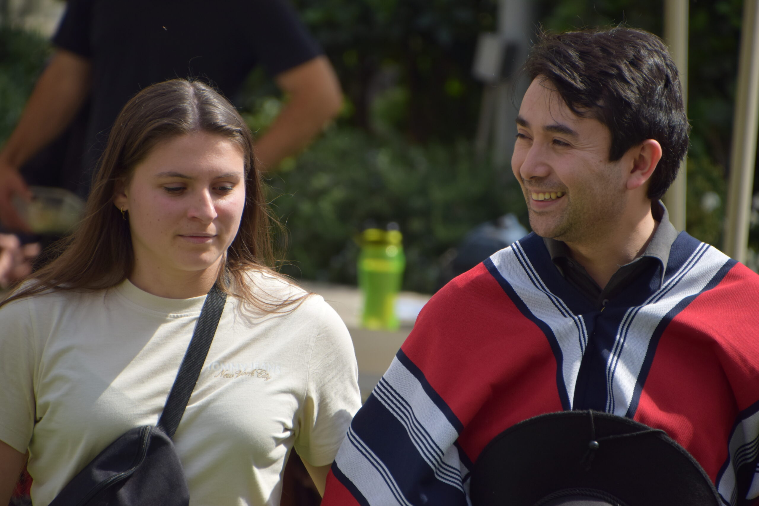 Charlotte, en tanto, bailó con el profesor de Derecho Felipe Pavez, quien iba con el atuendo de huaso. Al final, la estudiante belga señaló: “Lo que más me gustó fue lo que hacíamos como aplauso (las palmas del inicio), pero lo que más costó fue hacer las rondas, porque no sabía cuándo había que ir a la derecha o a la izquierda. ¡No sabía qué hacer con mis pies! Pero había que hacer el intento”.