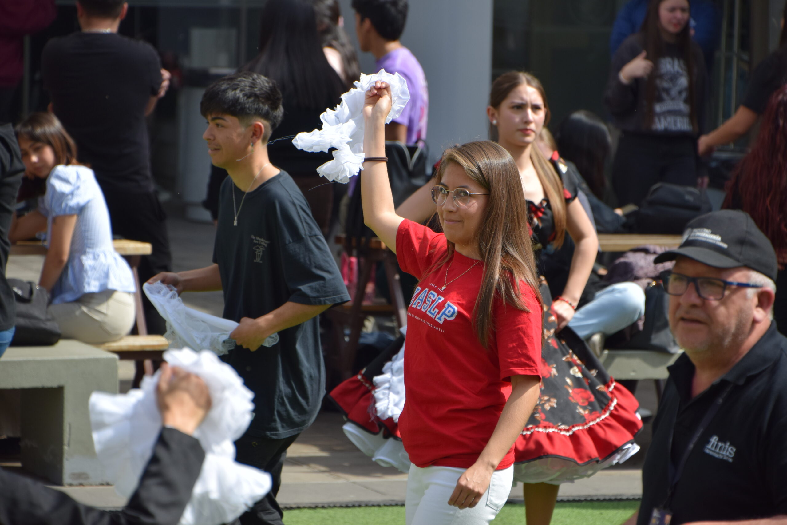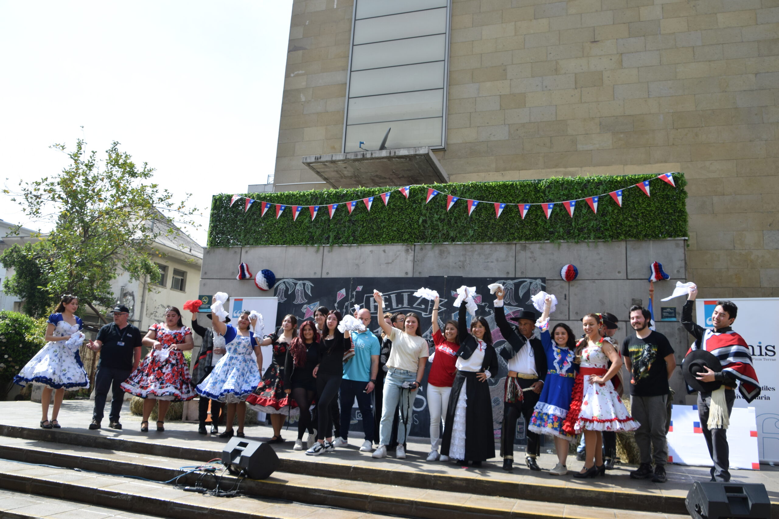 Un ondear de pañuelos blancos, que se movían al son de la cueca “La consentida” animó a estudiantes, académicos y colaboradores en la clase de nuestro baile nacional, celebrado en el patio central de la Universidad Finis Terrae. En esta actividad también participaron alumnos internacionales que animaron a dar sus primeros pasos.