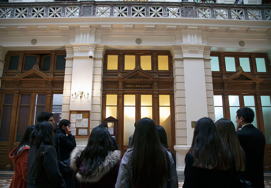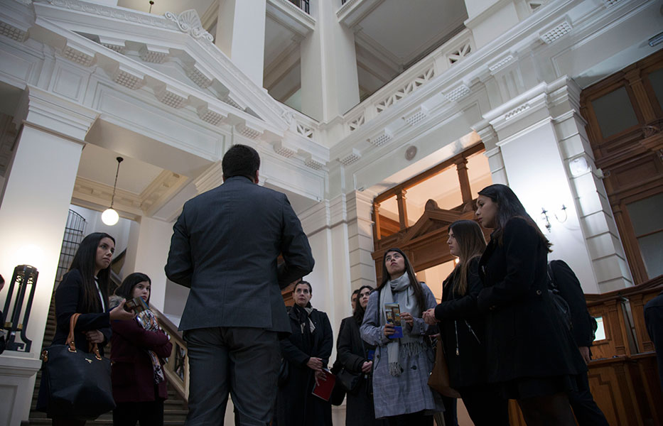 En un recorrido que consideró todos los pisos del edificio, y las dependencias de las tres Cortes, los futuros profesionales conocieron las oficinas donde los abogados realizan el ingreso de la documentación de sus causas, las tablas donde se informan las actividades del día y la biblioteca de la Corte Suprema, cuyos servicios están a disposición de los estudiantes de Derecho de todo el país. Además, tuvieron la oportunidad de participar de oyentes de un alegato que durante la misma mañana se llevaba a cabo en la Segunda Sala de la Corte Suprema.
