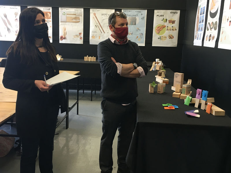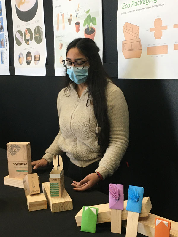 Los estudiantes de Interior y Equipamiento, por su parte, trabajaron junto a Simplo en el desarrollo de diseños en base a la patente ya existente de la marca, asociado a los productos “duo clickeat”, o bien sustitutos de plástico de un solo uso que usen materiales renovables/compostables, para lo que debieron entregar prototipos en una exhibición final.