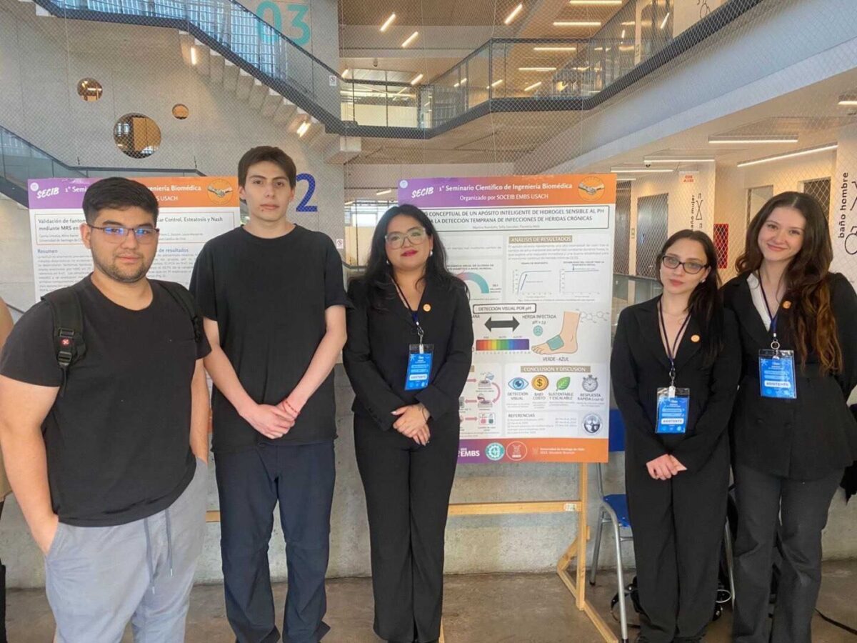 Un grupo de estudiantes de Ingeniería Civil Biomédica de la Universidad Finis Terrae participó del Primer Seminario Científico de Ingeniería Biomédica de la Universidad de Santiago (USACH), realizado los días 18 y 19 de diciembre, instancia que reunió a estudiantes, académicos y representantes de la industria.