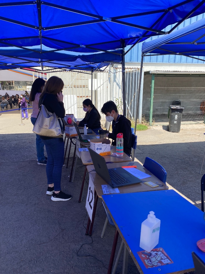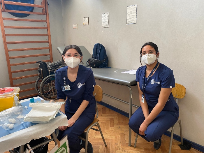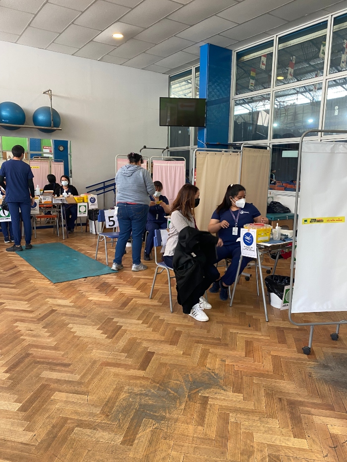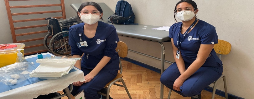 En ese contexto, alumnos y alumnas de la carrera de la U. Finis Terrae se sumaron al trabajo del centro asistencial, que le ha correspondido hacerse cargo de los puntos de vacunación del Polideportivo de Ñuñoa y el colegio Amapolas. Su participación ha incluido apoyar la administración de vacunas y el registro en el Sistema Nacional de Inmunización, además de ayudar en la orientación de los usuarios respecto a la complejidad del proceso y observar la aparición de signos graves de reacción a la inmunización.