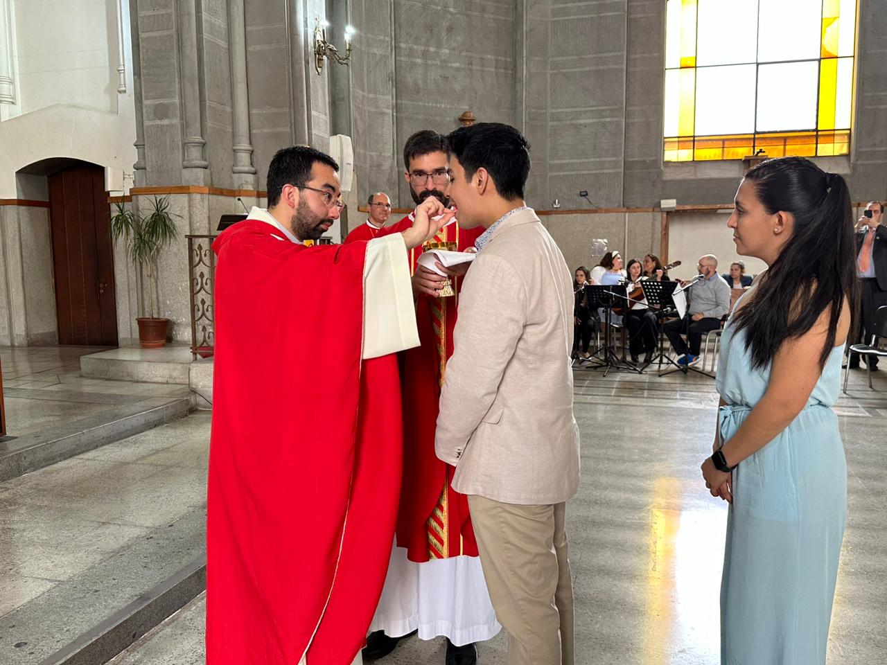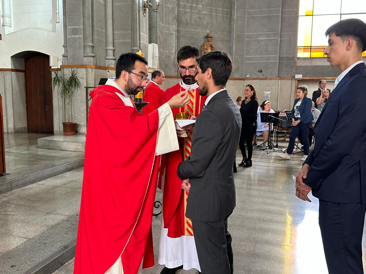Los estudiantes fueron acompañados por sus padrinos, familiares, amigos, catequistas y autoridades de la Universidad, como el rector Cristian Nazer y el vicerrector de Formación Integral, Jose Mateos.