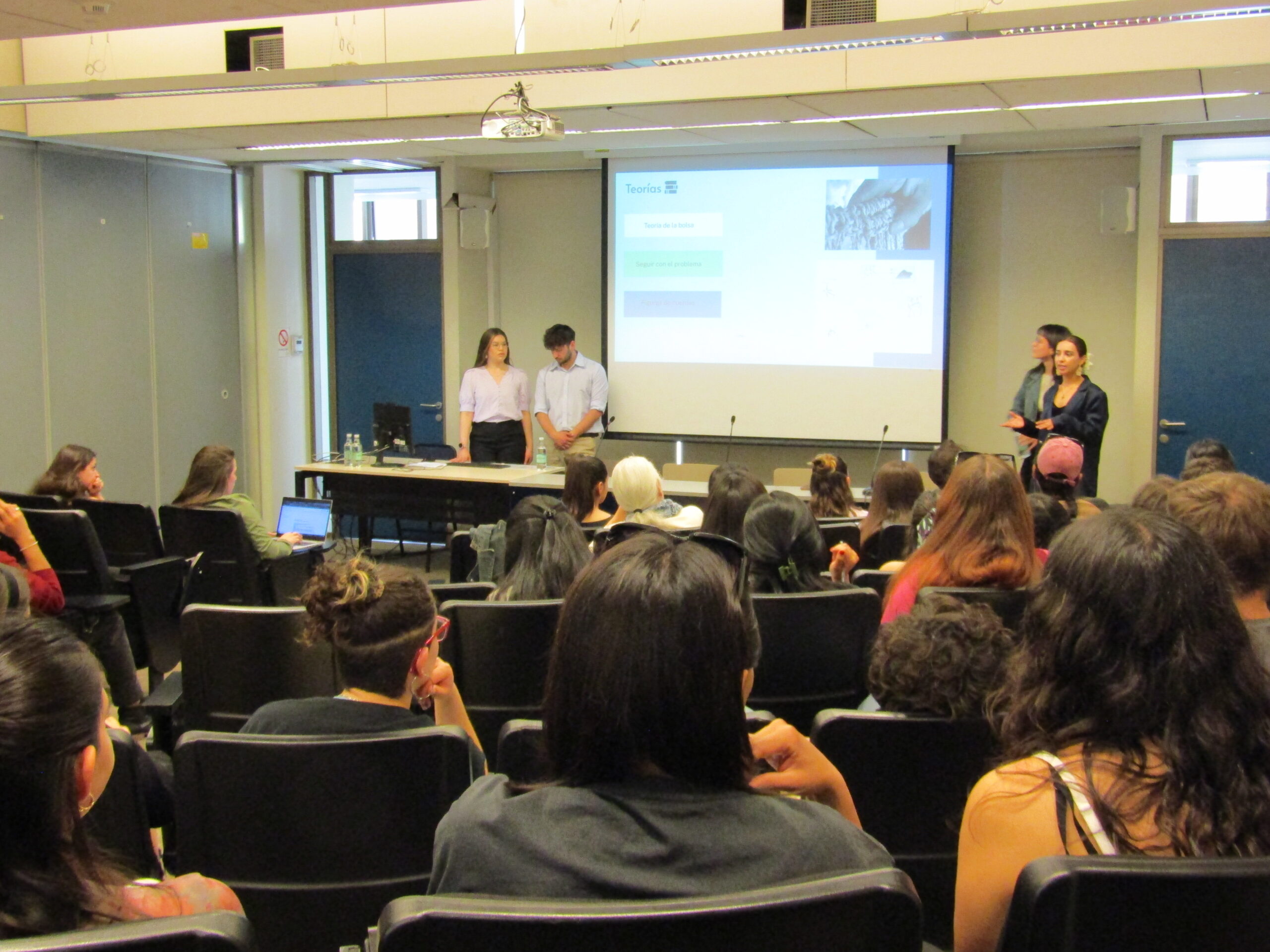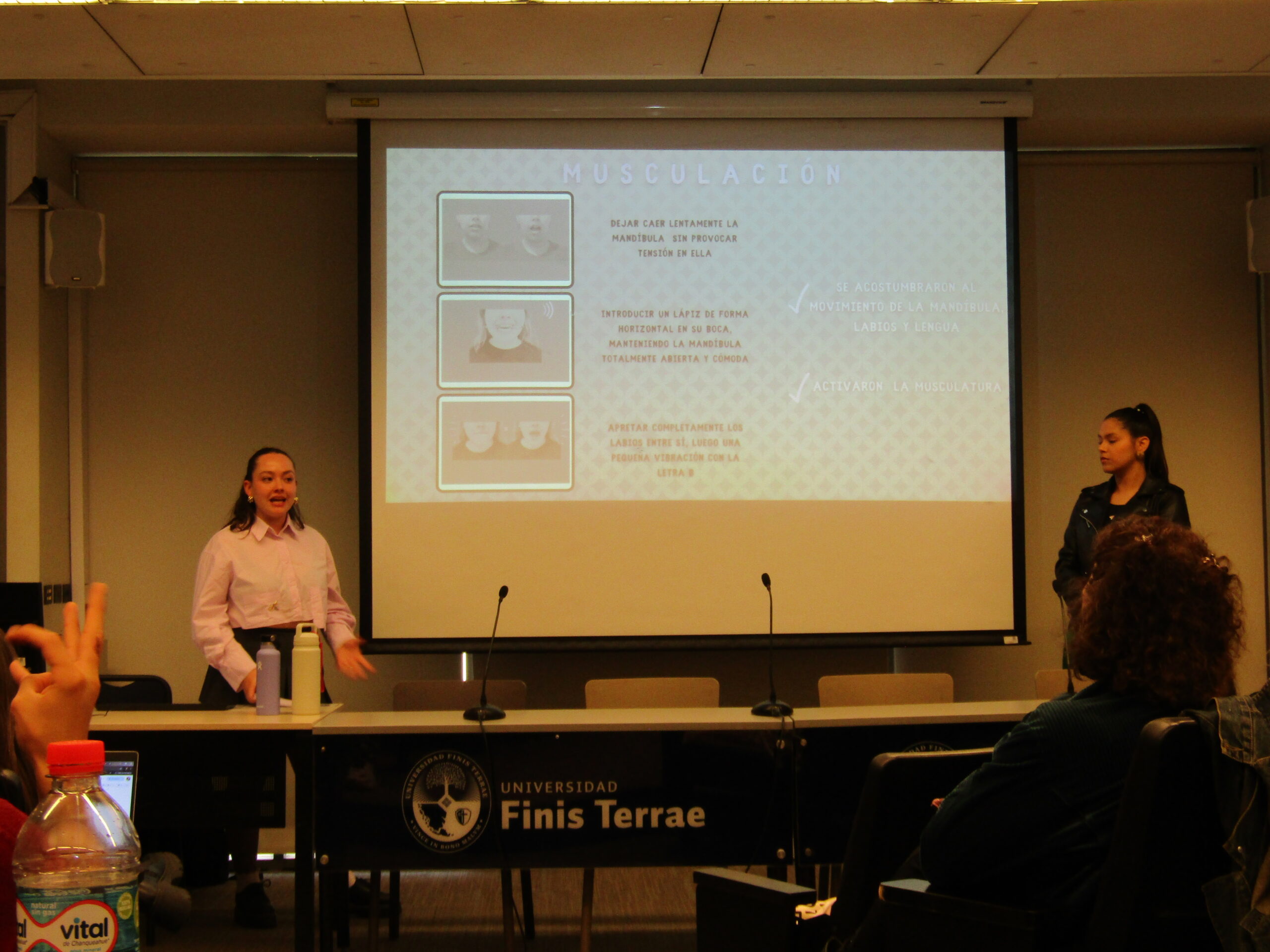Belén Rivera y Antonia Márquez, egresadas de Teatro y Creación Teatral de la Universidad Finis Terrae presentaron su proyecto de identificación y la liberación de tensiones, relacionado con el uso del cuerpo en la disciplina. “Queríamos presentarlo aquí, porque nos parece importante que los estudiantes puedan ver cómo a través de su práctica, se puede hacer un trabajo de investigación”, indicó Belén.