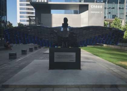 Esta obra de arte, está ubicada en la explanada del Centro Cultural de Fundación CorpArtes, en Las Condes.