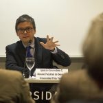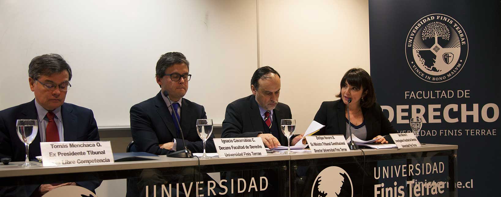La mesa redonda, titulada “El fallo Conadecus: ¿Qué futuro se espera para el espectro radioeléctrico chileno?”, contó con la presencia del decano de la Facultad de Derecho de la U. Finis Terrae y experto constitucionalista, Ignacio Covarrubias; el ex ministro del Tribunal Constitucional y director de Publicaciones de la Facultad, Enrique Navarro, y el ex presidente del Tribunal de Defensa de la Libre Competencia, Tomás Menchaca.
