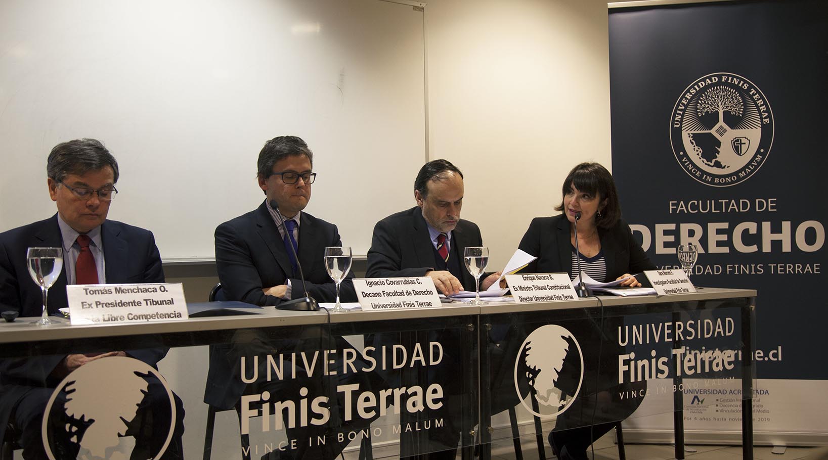 La mesa redonda, titulada “El fallo Conadecus: ¿Qué futuro se espera para el espectro radioeléctrico chileno?”, contó con la presencia del decano de la Facultad de Derecho de la U. Finis Terrae y experto constitucionalista, Ignacio Covarrubias; el ex ministro del Tribunal Constitucional y director de Publicaciones de la Facultad, Enrique Navarro, y el ex presidente del Tribunal de Defensa de la Libre Competencia, Tomás Menchaca.