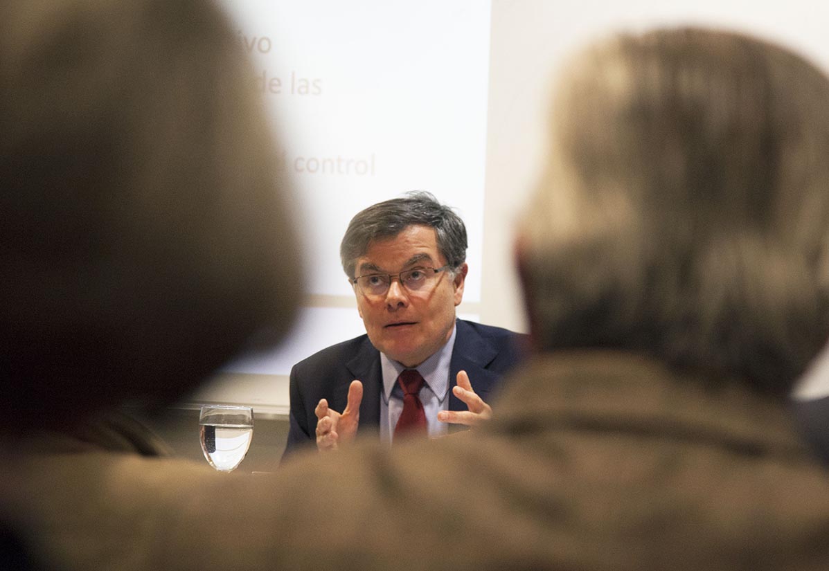 El diálogo, moderado por la investigadora de la Facultad Sara Moreno, analizó desde la perspectiva del Derecho Constitucional y de las normas de la libre competencia el histórico fallo que determinó que las tres empresas telefónicas -acusadas de acaparamiento del espectro- incurrieron en una conducta anticompetitiva al no respetar el límite de 60MHz impuesto en 2009 por la propia Corte Suprema como máximo que puede tener cada empresa en el mercado.