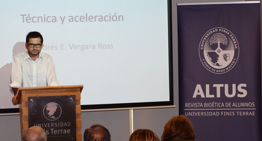 Sobre la enajenación en las redes sociales, el investigador Andrés Vergara, académico de Formación General de la U. Finis Terrae, hizo hincapié en su presentación la necesidad de volver a disfrutar del momento que se vive y estar realmente presentes. Las cifras muestran que alrededor del 40% de la población mundial, utilizan las redes sociales en línea y al menos permanecen en promedio 2 horas diarias. “No estamos totalmente conectados con lo que está pasando, sino que estamos dispersos en muchos lugares a la vez, sacándonos una foto ´feliz´, posteando y compartiendo ese estado, antes de efectivamente estarlo”. El docente recalcó la significancia de estar concentrados en cada hacer, como la observación contemplativa, el disfrutar un olor, una textura, el estar conscientes.