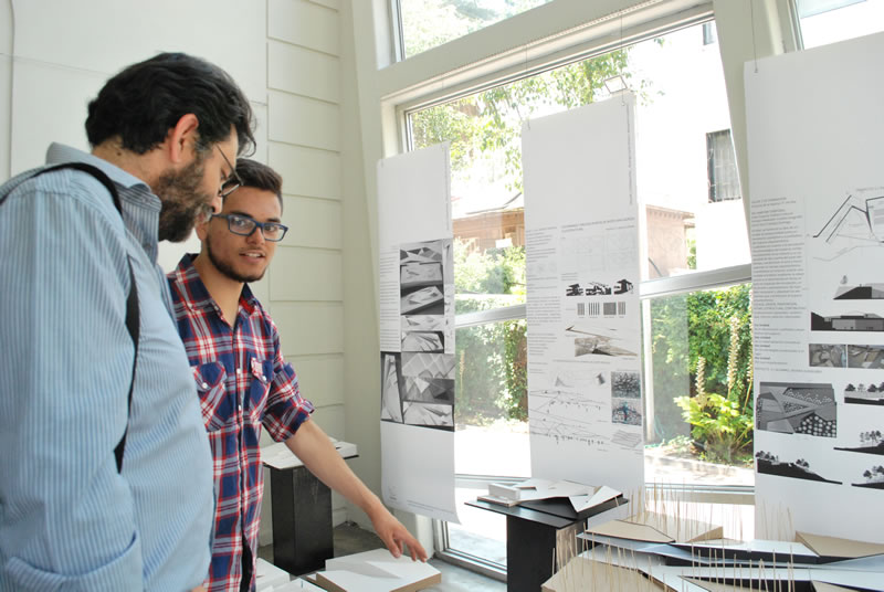 La exposición fue inaugurada por el decano Felipe Assadi junto a los directores de la Escuela de Arquitectura y de Diseño y a los estudiantes. Los alumnos, cuyos proyectos fueron seleccionados para la muestra, recibieron un diploma y vinieron acompañados por sus padres.