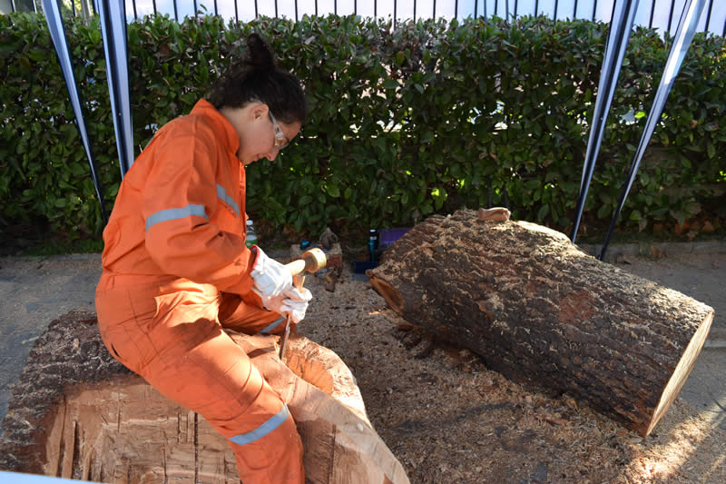 Durante una semana, estos jóvenes tallaron el tronco de un árbol hasta transformarlo en una escultura. Para la realización de las propuestas escultóricas contemporáneas, los artistas utilizaron materiales y técnicas tradicionales.