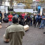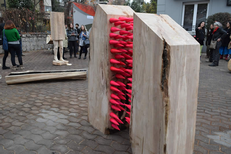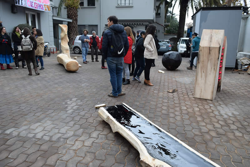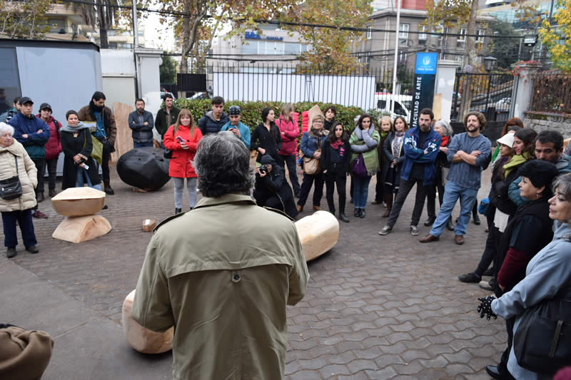 La actividad, que estuvo encabezada por los profesores Valentina Jara y Osvaldo Peña, se desarrolló en el acceso a las instalaciones de la Facultad de Arte. Allí trabajaron Andrea Silva Guzmán, Carolina Pinto, Catalina Ramírez, Catalina Zarzar, Edita Vásquez, Felipe Loyola, Joaquín Lozano, José Miguel Quitral, Marien Leible y Stephanie Verdugo, ex alumnos y estudiantes de primer, tercer y cuarto año de la especialidad de escultura.