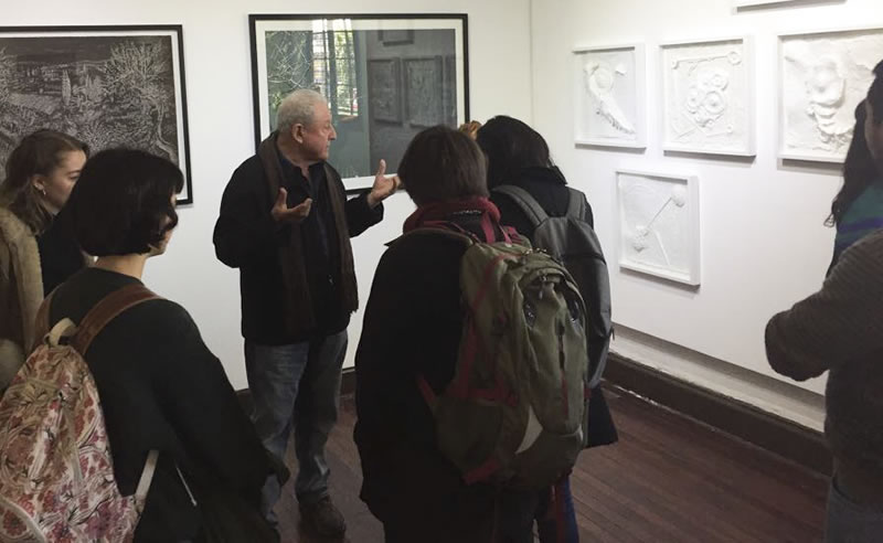 “En el seminario se tratarán desbordes y deslindes del grabado, es decir, ir más allá del grabado tradicional, de lo técnico y propositivo que tiene el grabado normalmente, y poder hacer cruces tanto conceptuales, tecnológicos y con otras áreas de las artes visuales”, señaló Alberto Zamora docente y coordinador de la línea de grabado de la Facultad.