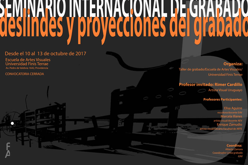 Entre los días 10 y 13 de octubre se realiza la nueva versión del Seminario Internacional de Grabado, organizado por el taller de grabado de la Escuela de Artes Visuales de la Facultad de Arte de la Universidad Finis Terrae.