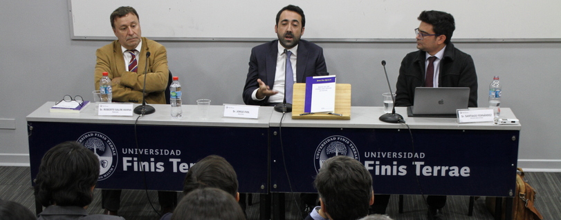 En la actividad, el decano de la Facultad de Derecho de la Universidad Finis Terrae, doctor Ignacio Covarrubias Cuevas, destacó que “hay varios motivos para enorgullecerse por la presentación de este libro. Siempre para una Facultad de Derecho será muy gratificante poder apoyar y celebrar a sus exalumnos, particularmente cuando son autores de obras tan meritorias como esta; una obra escrita por alguien que no se dedica a la vida académica y que se ha dado el tiempo de desarrollar un buen libro”. Asimismo, destacó el apoyo brindado al autor del libro en su proceso de investigación por “el querido profesor de la Facultad, Roberto Salim-Hanna, quien fue un destacado director de esta Escuela de Derecho”.