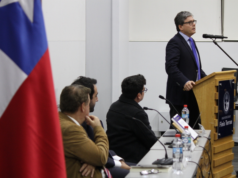 En la actividad, el decano de la Facultad de Derecho de la Universidad Finis Terrae, doctor Ignacio Covarrubias Cuevas, destacó que “hay varios motivos para enorgullecerse por la presentación de este libro. Siempre para una Facultad de Derecho será muy gratificante poder apoyar y celebrar a sus exalumnos, particularmente cuando son autores de obras tan meritorias como esta; una obra escrita por alguien que no se dedica a la vida académica y que se ha dado el tiempo de desarrollar un buen libro”. Asimismo, destacó el apoyo brindado al autor del libro en su proceso de investigación por “el querido profesor de la Facultad, Roberto Salim-Hanna, quien fue un destacado director de esta Escuela de Derecho”.