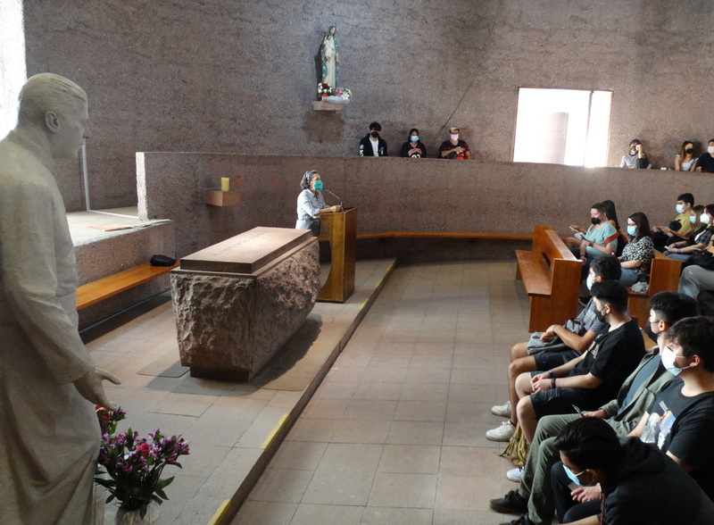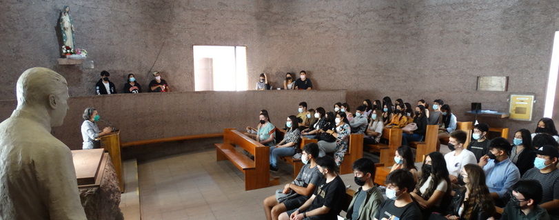 De esa forma, el decano Covarrubias dio inicio a un recorrido que estuvo marcado por la contemplación y el recogimiento frente a la vida y obra del santo patrono de nuestra facultad, el cual incluyó lugares como la tumba de San Alberto Hurtado y el museo dedicado, principalmente, a su trabajo social.