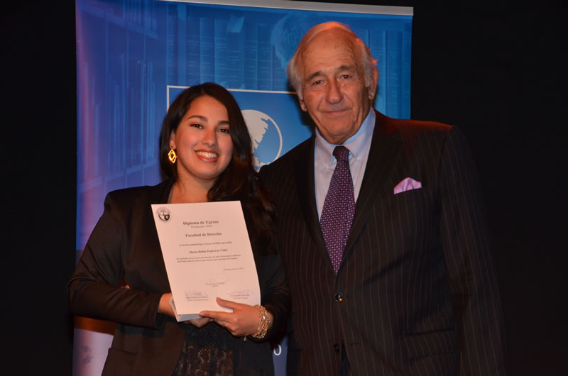 En la ceremonia se hizo entrega de los premios Francisco Bulnes Ripamonti a los mejores egresados de la carrera; Jaime Guzmán Errázuriz, a los mejores alumnos de los cursos de Político y Constitucional y, finalmente, el Premio Vince in Bono Malum, constituyen las instancias en que los méritos académicos y el compromiso con los valores institucionales son reconocidos por la Universidad, la Facultad y la respectiva Fundación.