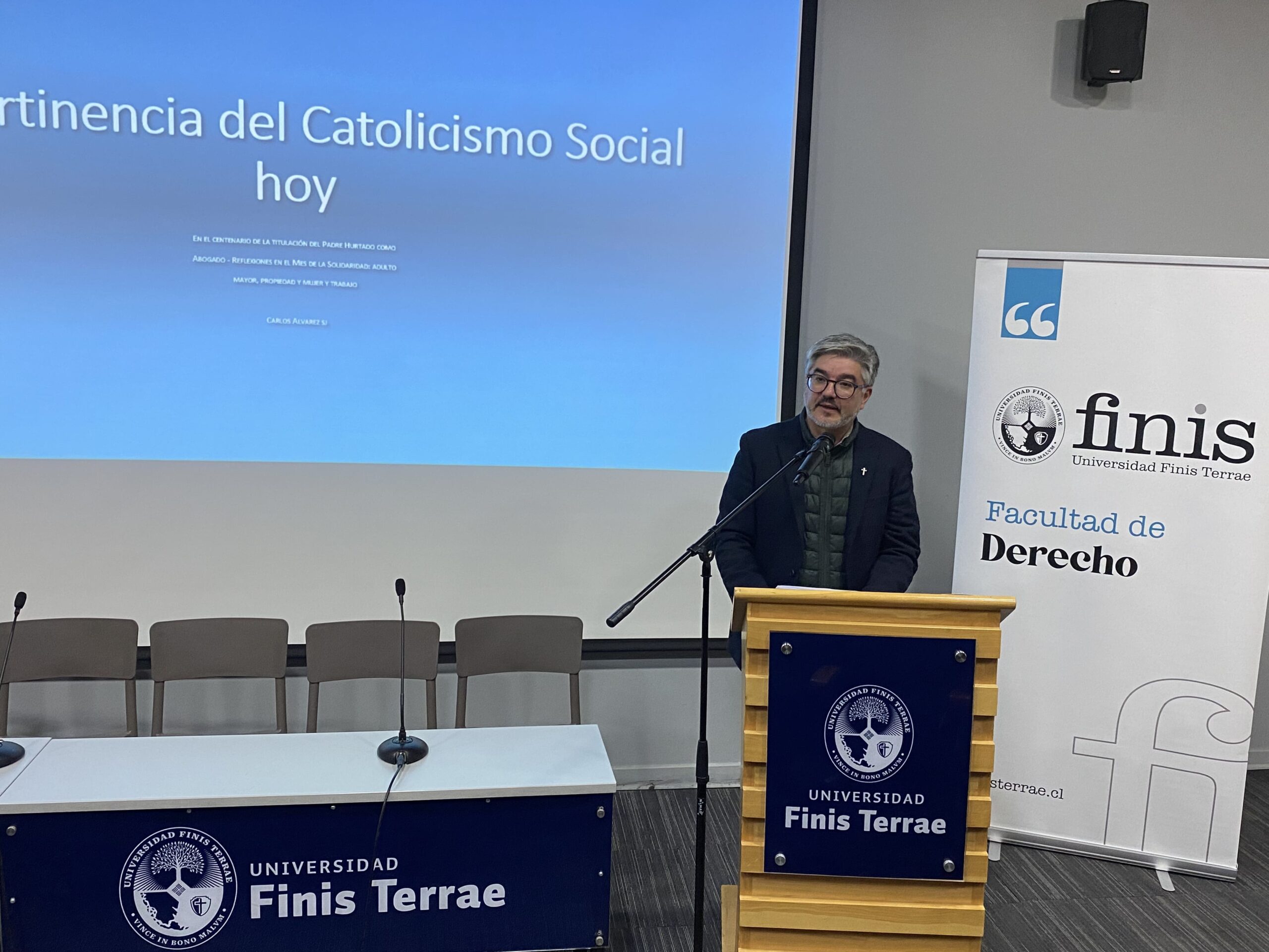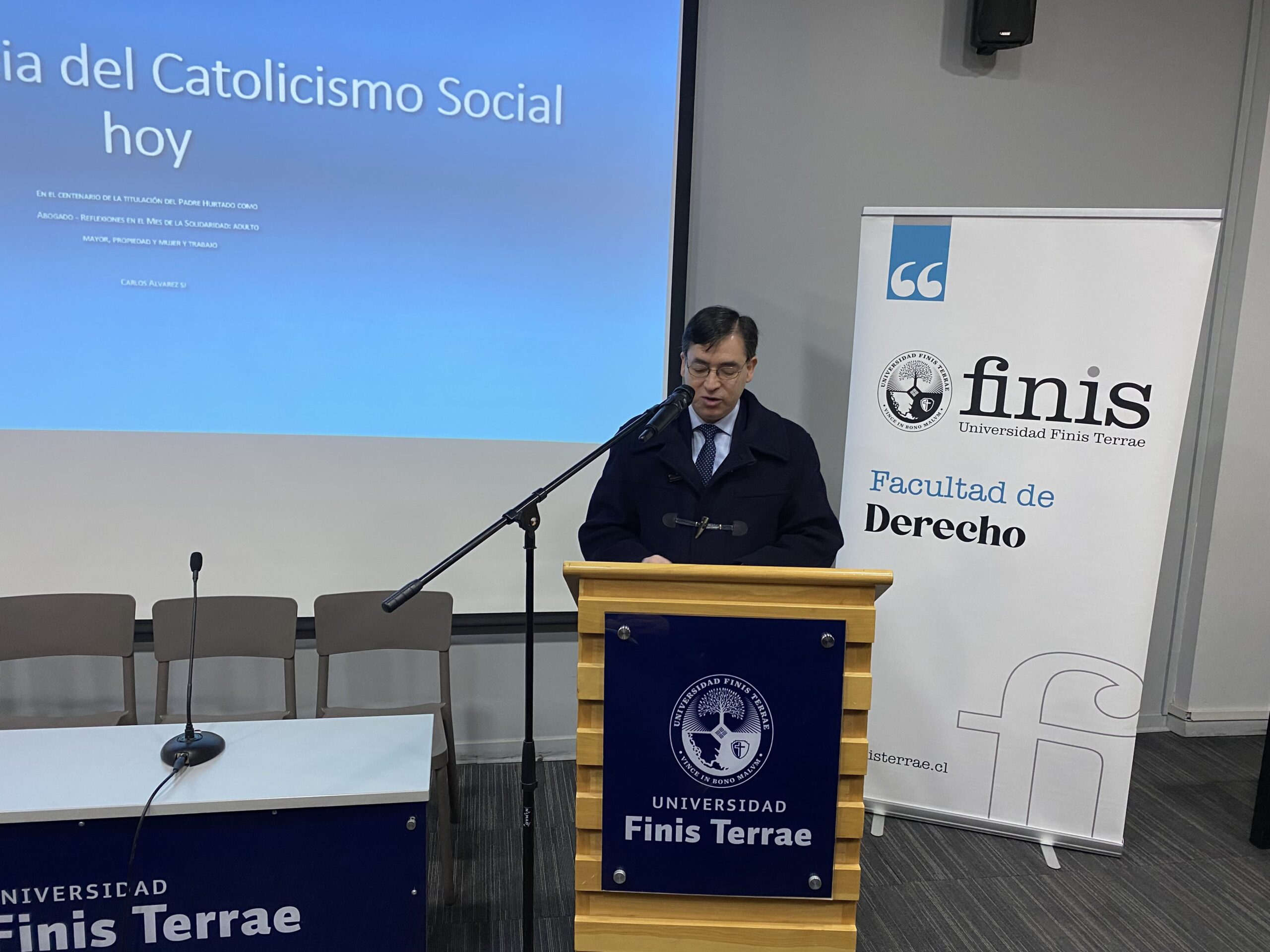 “El Padre Hurtado es una figura que reúne dos atributos que no suelen encontrarse en una sola persona: es un abogado que por su coherencia heroica de vida cristiana, también es un gran santo de la Iglesia. El patrocinio del Padre Hurtado no es sólo algo simbólico para nuestra Facultad, sino que su ejemplo de vida y su legado intelectual sirven de verdadera inspiración para la formación de nuestros alumnos”, señaló en la inauguración de la actividad, el director de nuestra Escuela, Marco Antonio Navarro.