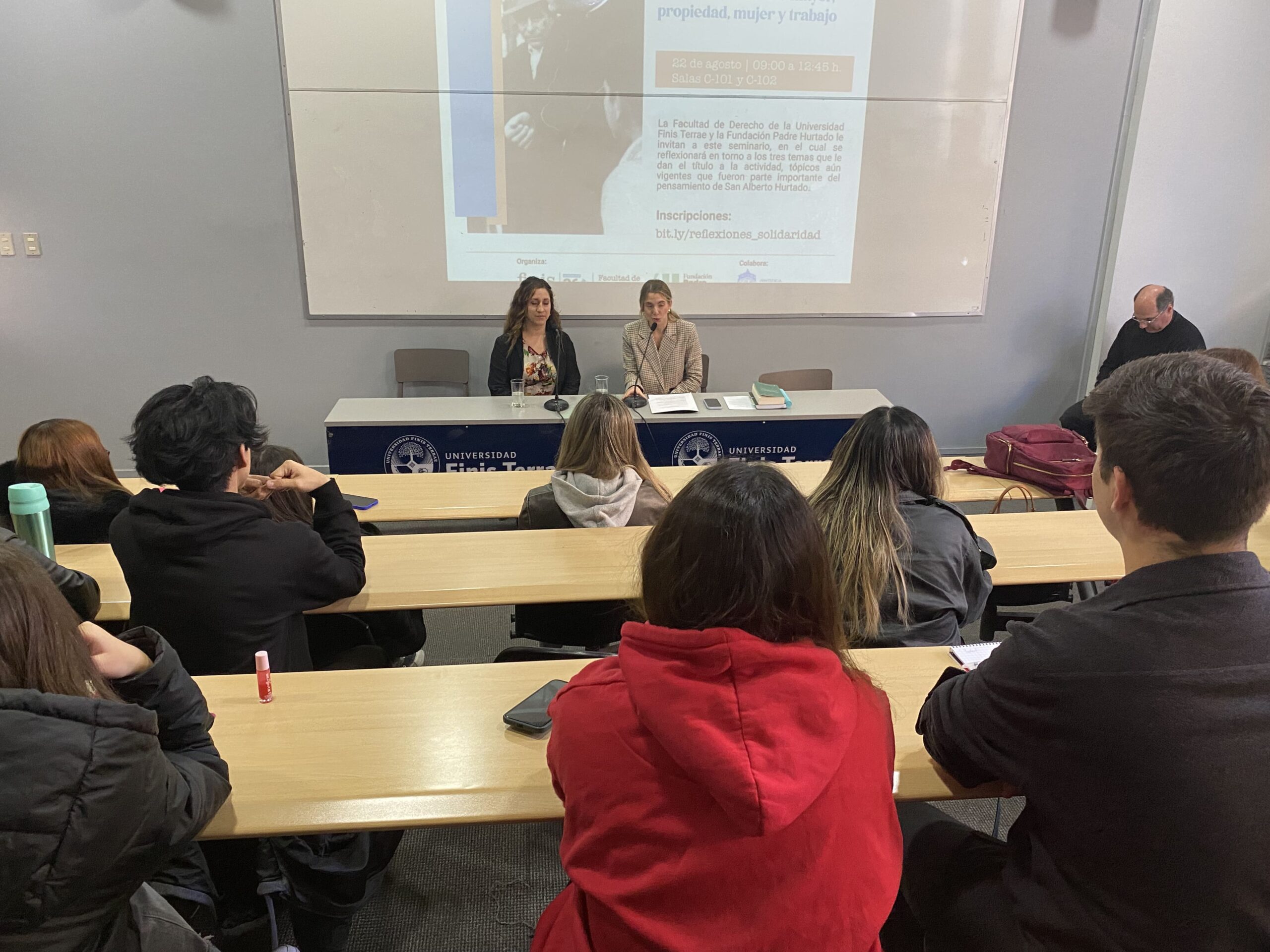 Por su parte, la directora ejecutiva de la Fundación Padre Hurtado, María Paz Vega destacó la importancia de que los estudiantes y profesores de una Escuela de Derecho promuevan la justicia, un tema “que hace tanto sentido en estos tiempos”.