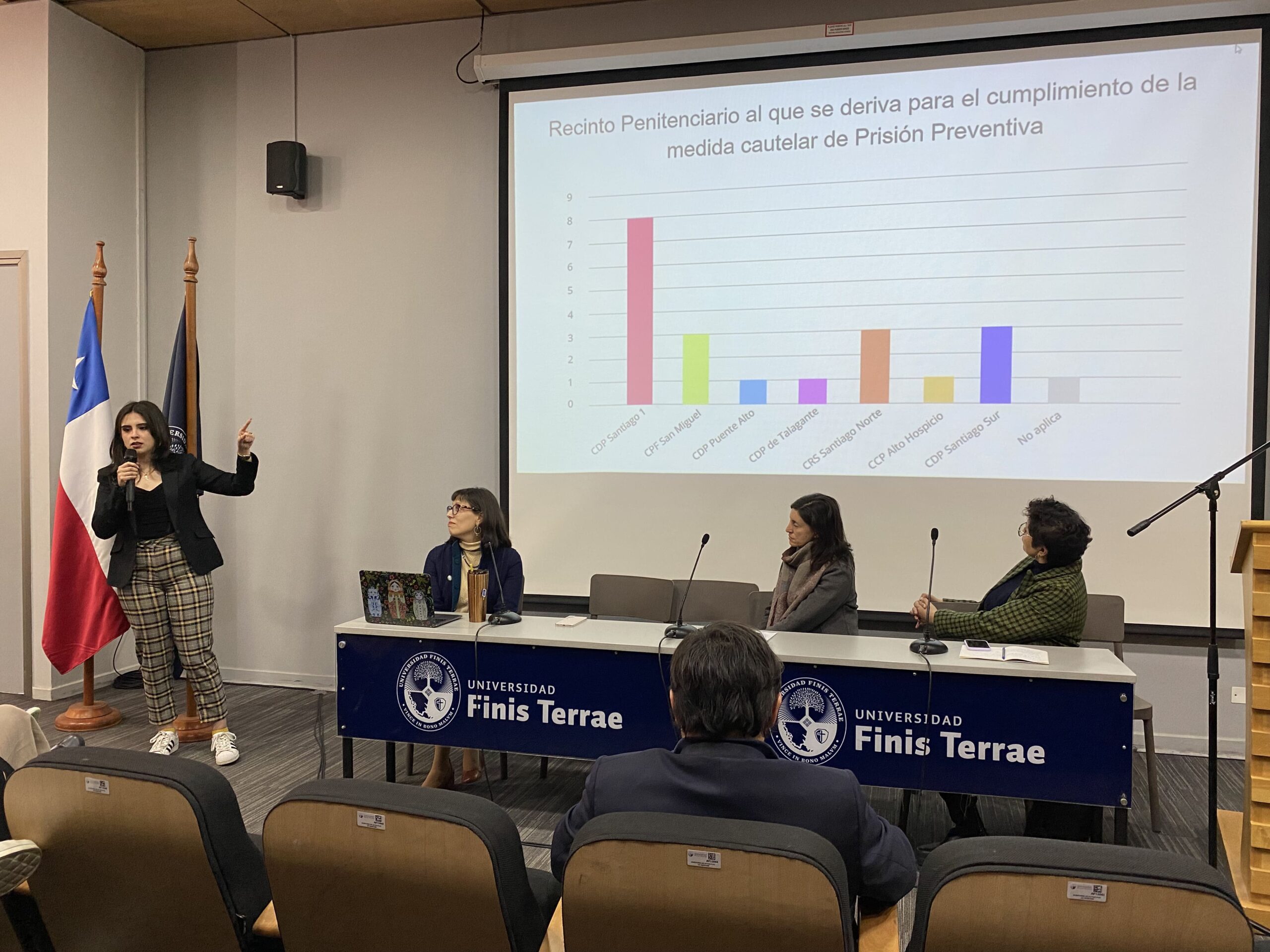 Posteriormente el seminario incluyó la realización de dos mesas paralelas. En la mesa dedicada a temas de adulto mayor, la profesora de nuestra Facultad, Dra. Ángela Arenas junto a la alumna Lorena Fuenzalida, expuso sobre la realidad de las personas mayores con demencia en situación carcelaria, parte de su investigación desarrollada en el Laboratorio de Investigación Avanzada en Ciencias de Datos en Derecho que la Dra. Arenas dirige.