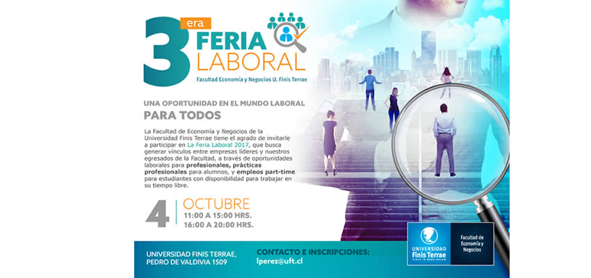 La Facultad de Economía y Negocios de la Universidad Finis Terrae, realizará la tercera Feria Laboral y de prácticas profesionales para sus alumnos y egresados.