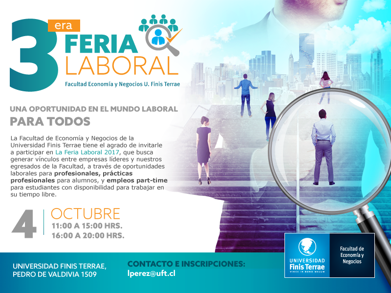 La Facultad de Economía y Negocios de la Universidad Finis Terrae, realizará la tercera Feria Laboral y de prácticas profesionales para sus alumnos y egresados.