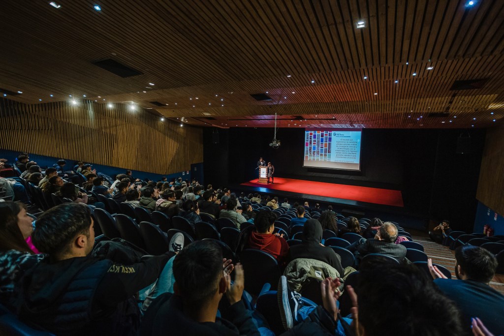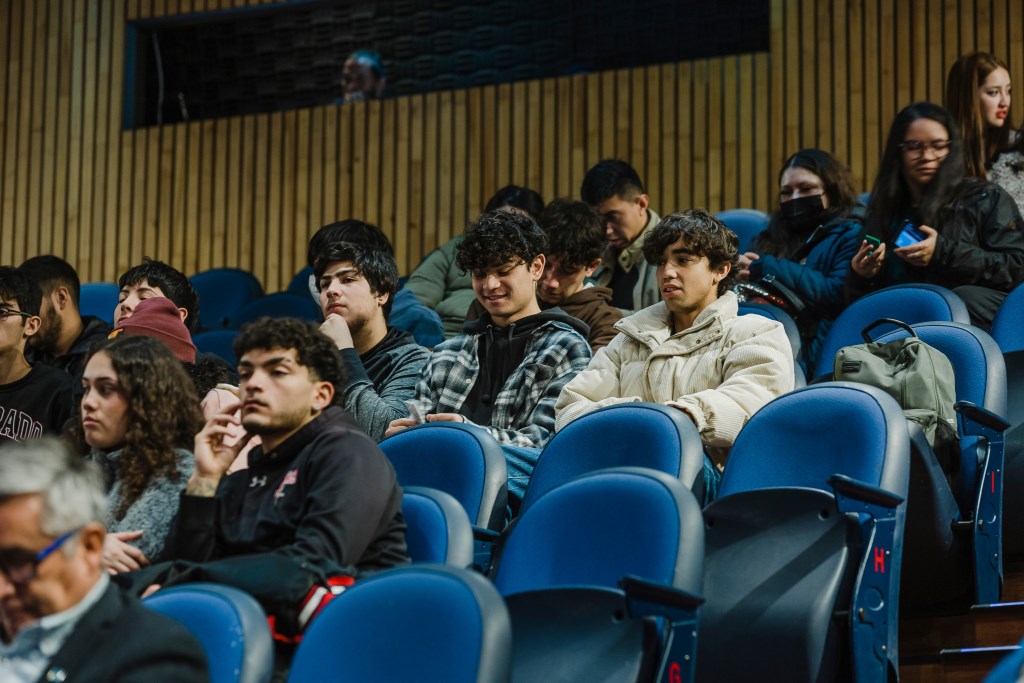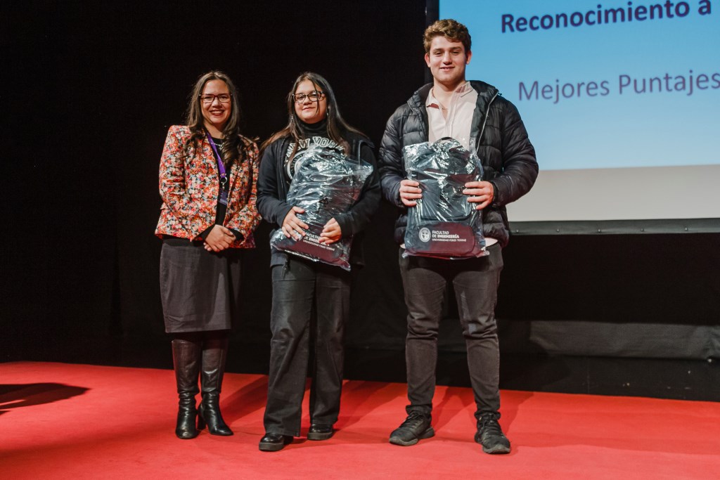 Durante el evento -conducido por Luis Lino, director de la carrera de Ingeniería Civil Industrial- se realizó un reconocimiento a los mejores puntajes de ingreso a las carreras de Ingeniería Civil Industrial e Ingeniería Civil Informática y Telecomunicaciones en 2023. Dilan Neida y Liscelis Hernández, ambos de primer año de Ingeniería Civil Informática, compartieron su experiencia.