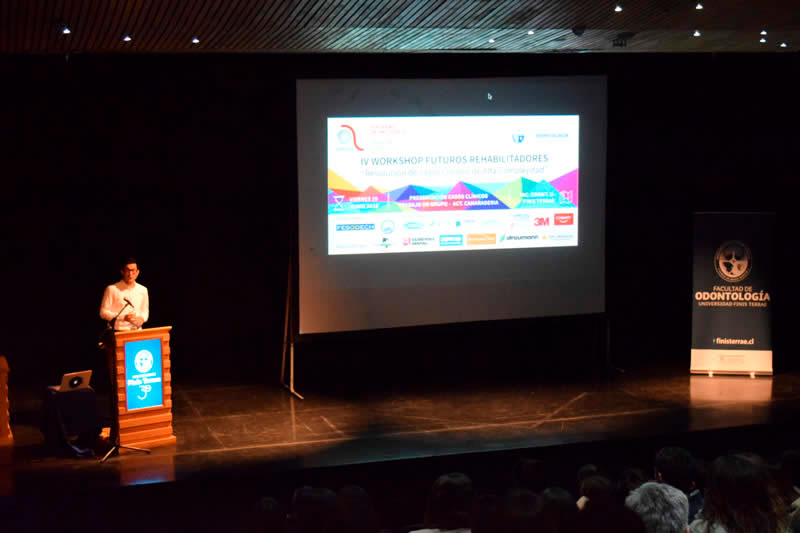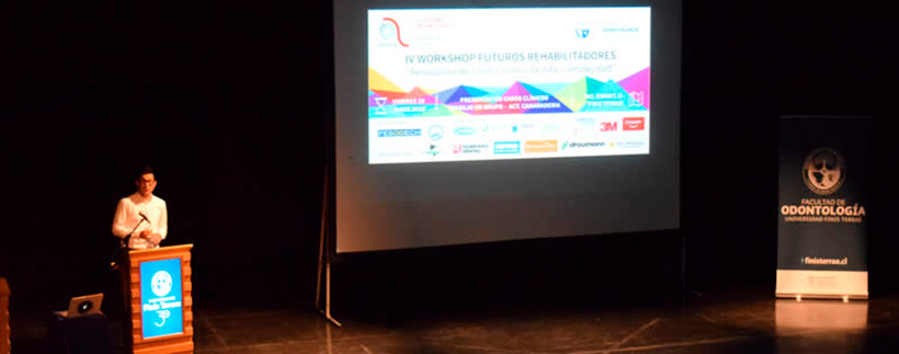 Con el objetivo de reunir a universidades amigas en una actividad diseñada para alumnos que están cursando la especialidad rehabilitación oral, la Facultad de Odontología de la Universidad Finis Terrae junto a la Sociedad de Prótesis de Chile, llevaron a cabo presentaciones de casos clínicos y trabajos en grupo de estudiantes de la especialidad de rehabilitación en el Teatro de la Universidad Finis Terrae.