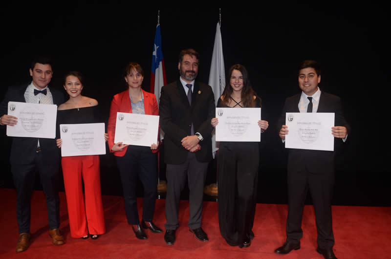 Durante la ceremonia, premiaron a los titulados de pregrado con destacada participación en su período de estudios, recibiendo así el premio a la Excelencia Académica por parte de ACHEO, el premio al “Interno Distinguido de la Armada”, la distinción del “Compromiso Social”, la distinción del “Mérito Gremial” otorgado por el Colegio de Cirujano Dentistas y el premio al “Espíritu Científico” por parte de Oral-B.