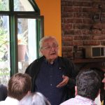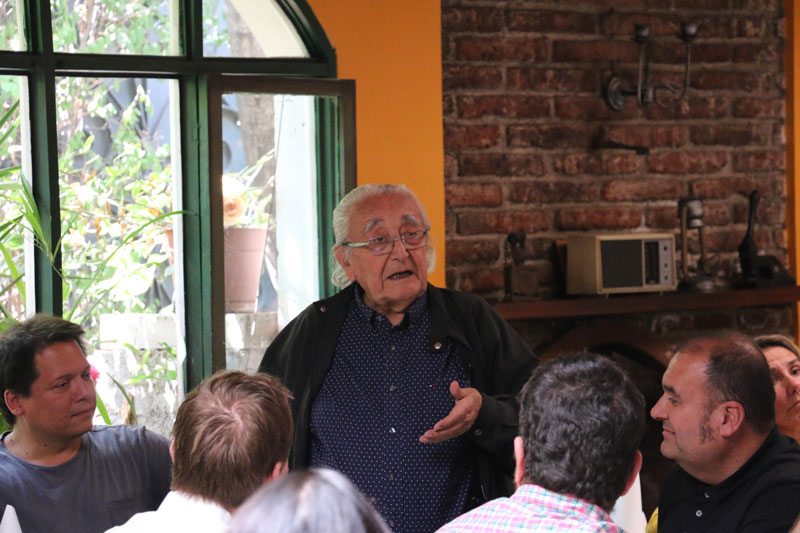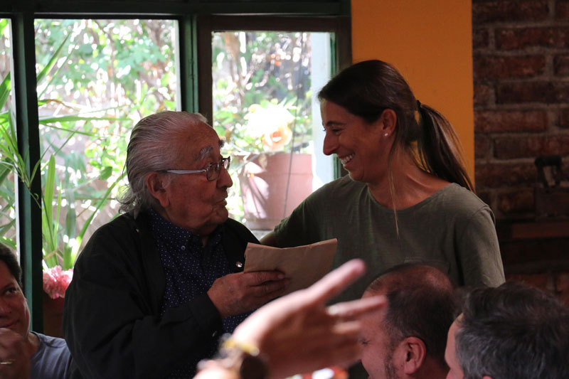 El pasado 29 de marzo la Facultad de Arquitectura y Diseño realizó su tradicional Encuentro de Egresados, pero esta vez con una novedad: un homenaje al profesor Sergio Miranda –uno de los docentes fundadores de la Facultad- quien cumplirá 90 años. Es por esto que se invitó sólo a las 10 primeras generaciones de Arquitectos y Diseñadores, quienes llegaron hasta el restoran Doña Tina de Lo Barnechea a reencontrarse con sus ex compañeros y docentes.En el encuentro, el decano de la Facultad dirigió unas palabras al profesor Miranda, agradeciendo su labor y dedicación como fundador de la Facultad. Posteriormente, la directora de la Escuela de Arquitectura, Magdalena Sierra, le entregó un regalo en presentación de la Facultad.