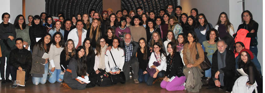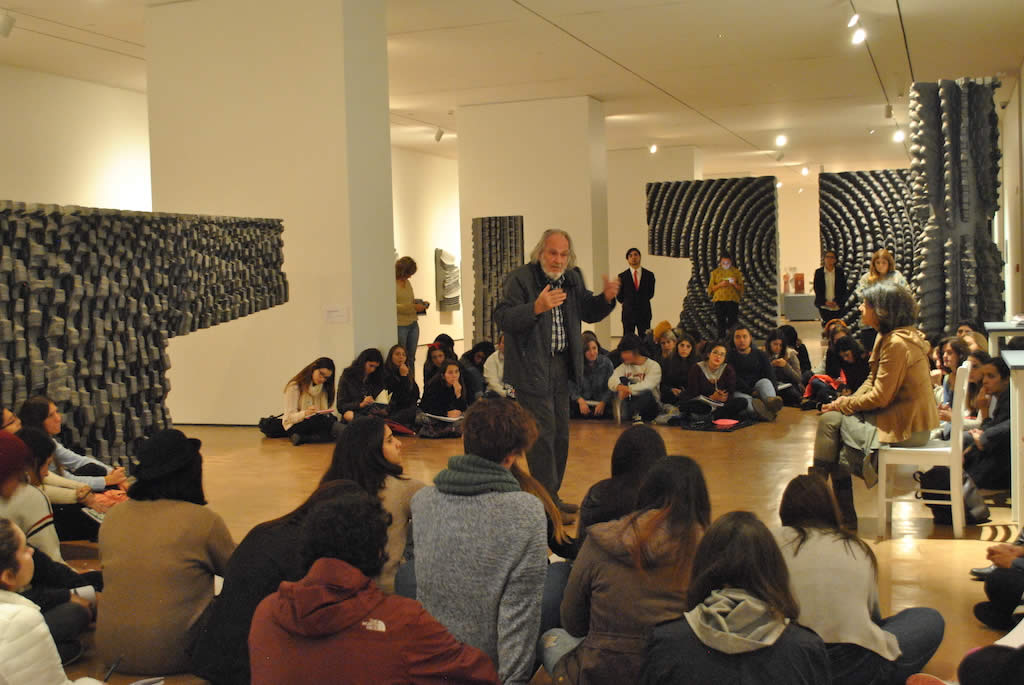 El ganador del Premio Nacional de Arte 2009 dialogó con los jóvenes en una gran asamblea en medio de sus esculturas, explicando su modo de trabajar, su postura frente a su oficio, el origen de sus obras y la manera de cómo ellas se relacionan con su entorno.