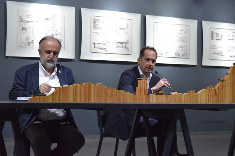 Marco Antonio de la Parra, director de la cátedra, fue el encargado de conversar con el destacado arquitecto, quien durante su presentación explicó en detalle su obra.