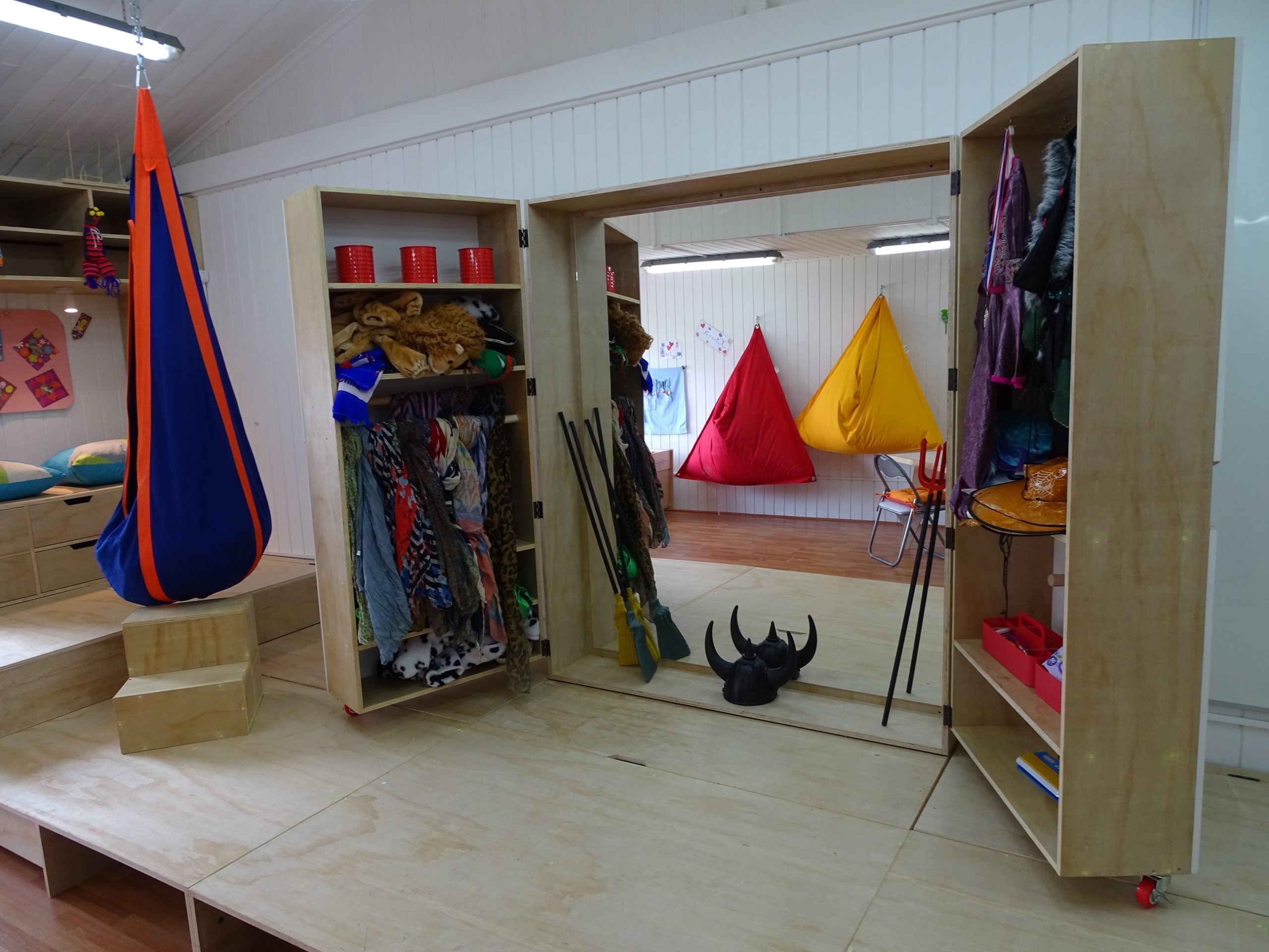 Además, podrán utilizar novedosos asientos tipo “saco de cigüeña” (implementos terapéuticos para incentivar la estimulación propioceptiva) y cojines gigantes para momentos de reuniones; una mesa de luz que utiliza transparencias en proyección para promover la creatividad, así como mesas para micro talleres.