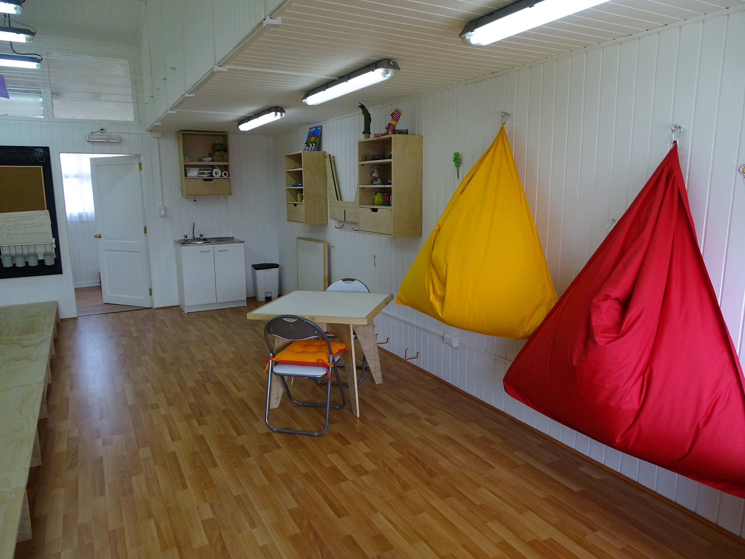 Además, podrán utilizar novedosos asientos tipo “saco de cigüeña” (implementos terapéuticos para incentivar la estimulación propioceptiva) y cojines gigantes para momentos de reuniones; una mesa de luz que utiliza transparencias en proyección para promover la creatividad, así como mesas para micro talleres.