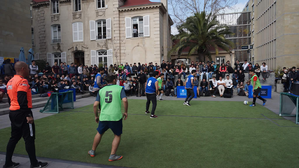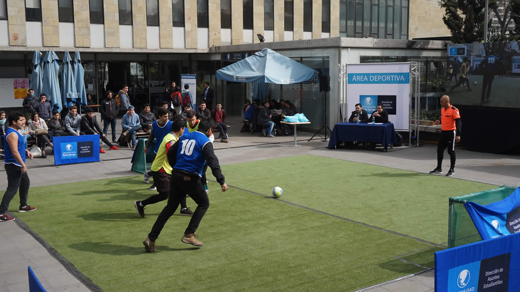 No era la primera vez que un evento organizado por la Coordinación de Deportes de la DAE generaba expectativa en los alumnos, quizás debido a que siempre las actividades deportivas tienden a motivar a un alto porcentaje de estudiantes. Pero, sin duda alguna, el Fútbol 3×3 con relatores profesionales, ha dejado la vara muy alta. Ya van dos torneos de esta disciplina, cuyo resultado ha sido extraordinario: tanto por la participación de los equipos, como por el apoyo del grueso de la comunidad universitaria. El patio Amberes, escenario de la actividad, se encontraba atiborrado de alumnos, varios minutos antes de que se iniciara el evento.