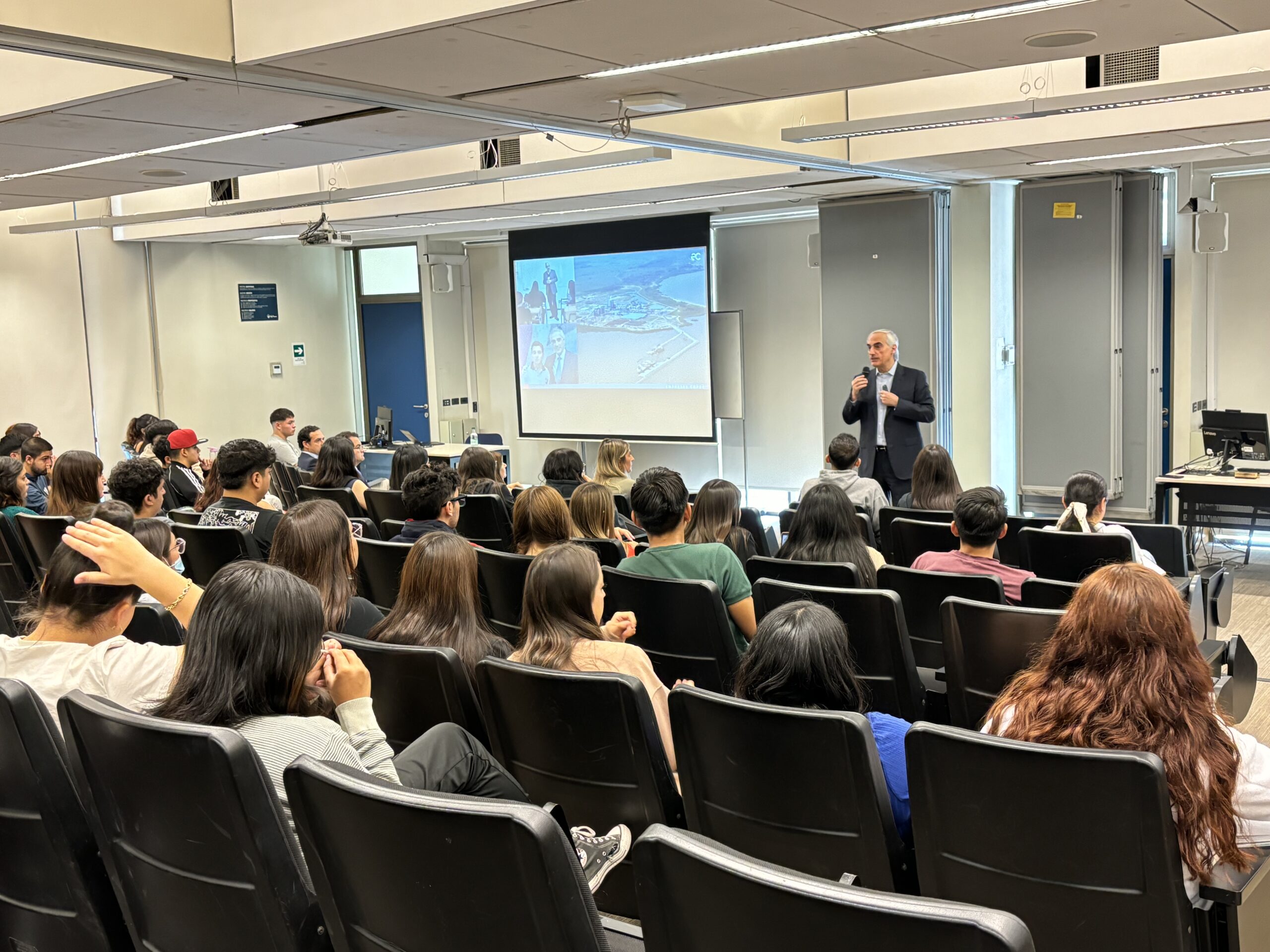 Una presentación sobre la evolución de Empresas Copec, desde unas primeras décadas en que solo se focalizaba en los combustibles líquidos, hasta la visión actual, que incluye una diversidad de áreas de negocios, una cobertura comercial global, presencia productiva en 16 países, una toma de decisiones con los más altos estándares éticos y con la sostenibilidad como elemento central de sus decisiones estratégicas, realizó el gerente general, Eduardo Navarro, a los estudiantes de primer año de Ingeniería Comercial de la Universidad Finis Terrae.