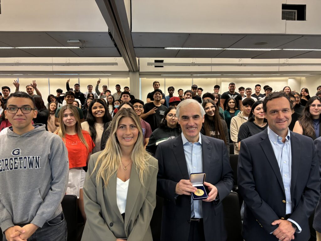 “Es muy importante juntar el mundo de la academia con el de la empresa (…) Es bueno hablarle a la gente joven, transmitir la experiencia que tenemos, los dolores, los problemas, los sueños. Todo lo que sea relacionar mundos distintos le hace muy bien al país”, señaló Navarro sobre su disposición de conversar con los alumnos y alumnas de la institución.