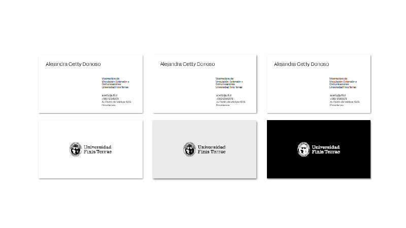 Tarjetas de presentación con jerarquía clara de información personal e institucional.