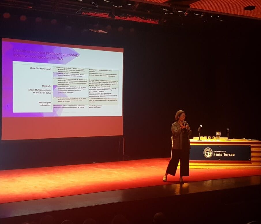 La segunda parte del simposio presentó la experiencia del Centro Educativo ANADIME, una institución que ha desarrollado un modelo inclusivo-ecológico basado en la colaboración intersectorial, la formación continua del equipo pedagógico y la participación activa de las familias. La exposición estuvo a cargo de las académicas Paula Tapia y Yarela Muñoz, autoras de uno de los capítulos del libro presentado.