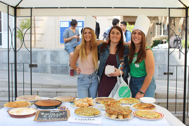 Una nueva versión de la Feria Gastronómica Internacional se vivió el pasado miércoles 4 de abril en la Universidad Finis Terrae, donde participaron 50 alumnos de intercambio provenientes de países como Alemania, Francia, Países Bajos, México, España, Ecuador, Corea del Sur, Colombia e Italia; quienes compartieron con la Comunidad Universitaria sus platos típicos, permitiendo con ello conocer acerca de sus culturas, ingredientes y recetas, además de vivir la experiencia de interactuar con jóvenes de todo el mundo.
