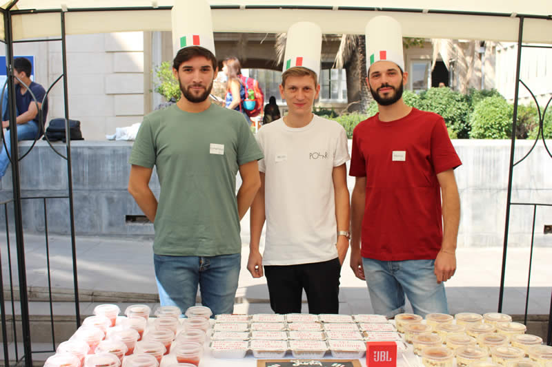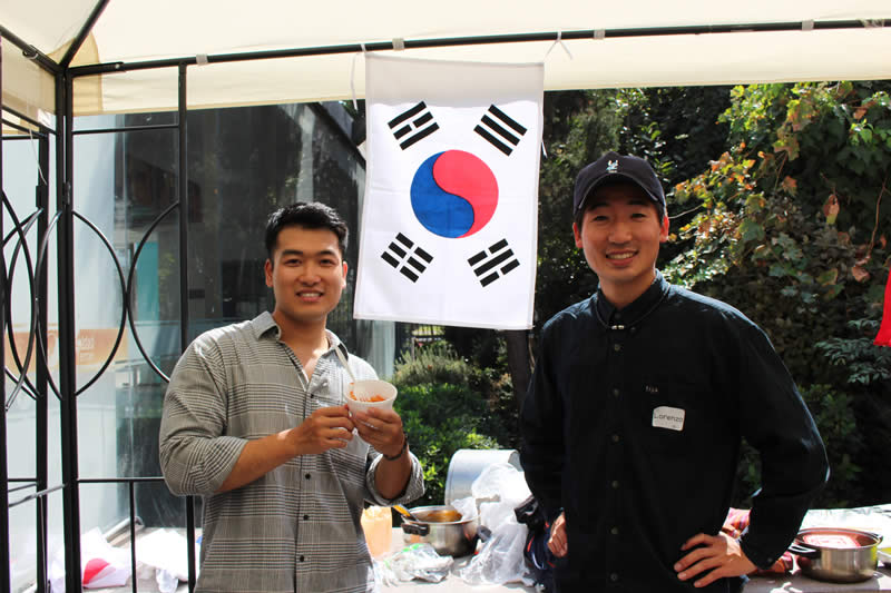 La actividad se realizó en el patio de Amberes Norte alrededor del mediodía y contó con diez puestos de distintas versiones de comidas dulces y saladas. Dentro de ellas, lo más llamativo fue Tteokbokki, plato típico de Corea del Sur, preparado por los alumnos Junho y Lorenzo, el cual consistía en una masa de arroz con tortilla de pescado, acompañado de una salsa de ají y soja.