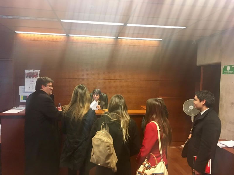 Y el 28 de agosto, junto a los alumnos Paulina Giacaman, Vania Jaime, Ricardo Márquez, Nataly Mella, Nicole Escobar y Andrés Balart, se concurrió a las dependencias de la Fiscalía Centro Norte y luego los estudiantes pudieron presenciar audiencias de control de la detención del 3º y 6º Juzgados de Garantía.