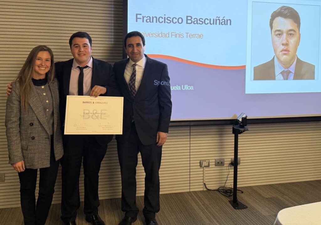 Francisco Bascuñán fue galardonado con esta importante beca, que incluye una pasantía de tres meses en el reconocido estudio de abogados y apoyo económico para la preparación de su examen de grado. Asimismo, su compañero de generación, Reinaldo Torrejón, recibió una mención honrosa, destacando el nivel académico de nuestros estudiantes.
