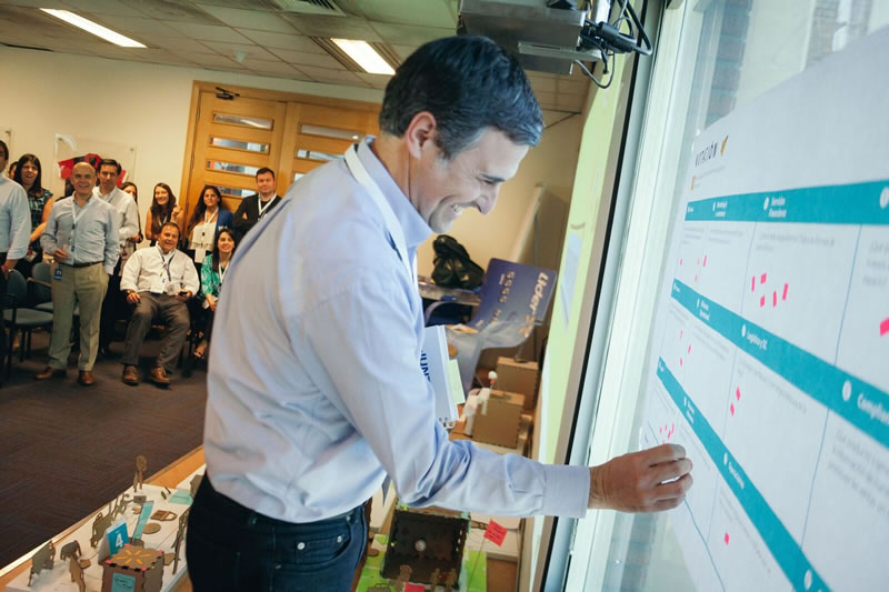 El taller -que contó con la presencia de los gerentes de la empresa-, consistió en crear una propuesta sobre cómo imaginaban el retail del futuro, a través del design thinking, método creativo para resolver problemas en los negocios.