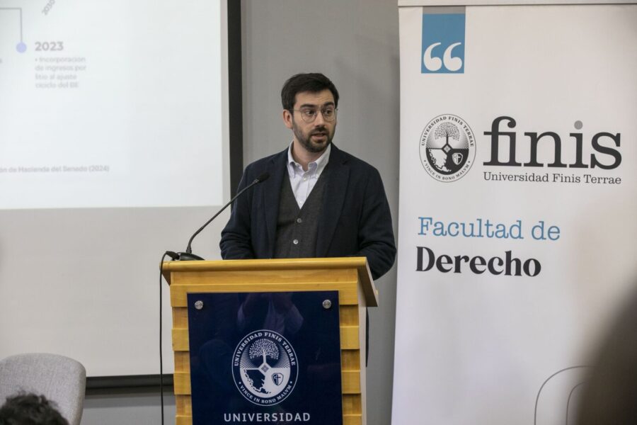 La presentación del profesor de la Facultad de Derecho e investigador del Centro de Estudios Públicos (CEP), Tomás de la Maza Bengoa, sobre los aspectos más relevantes en torno al Presupuesto 2026 y el fuerte debilitamiento de las arcas públicas, recientemente por el Consejo Fiscal Autónomo, dio inicio al conversatorio Presupuesto 2026. Desafíos y prioridades del nuevo ciclo político, actividad organizada por la Facultad de Derecho de la Universidad Finis Terrae en colaboración con el Centro de Políticas Públicas (CPP) de nuestra casa de estudios.