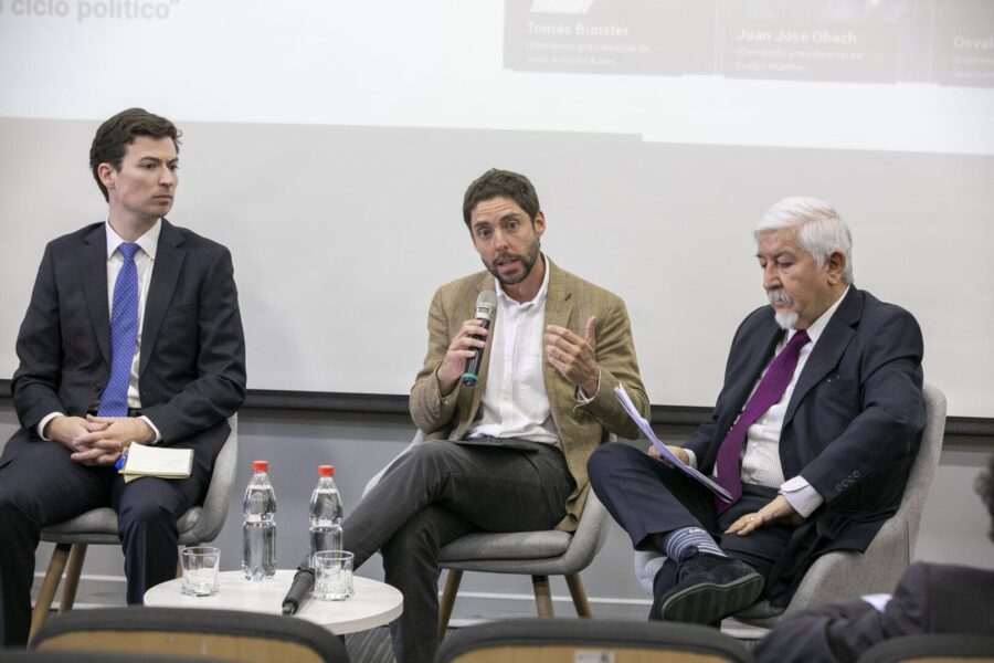 En la instancia, Tomás Bunster, asesor del equipo de José Antonio Kast; Juan José Obach, miembro del equipo económico de Evelyn Matthei; y Osvaldo Rosales, representante del equipo de Jeannette Jara, plantearon sus propuestas para recuperar el crecimiento de “una economía en decadencia” cuyo ritmo “no es suficiente para satisfacer las necesidades de la ciudadanía”, como describió en su primera intervención, el asesor económico del candidato del Partido Republicano.