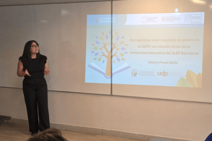 La asistente del Centro de Investigación en Psicología, Educación y Familia (CIPEF) presentó el estudio “Percepciones sobre prácticas de equidad de género en la EMTP: un estudio mixto en la comunidad educativa del SLEP Barrancas”. El estudio recoge miradas de estudiantes. Por otra parte, identifica buenas prácticas y brechas con enfoque de género en liceos técnico-profesionales del territorio. Con ello, aporta insumos para decisiones formativas y de gestión.