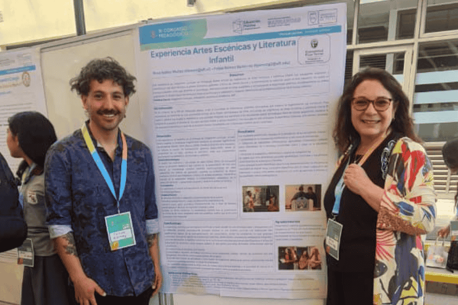 La académica de Pedagogía en Educación Básica y coordinadora del Postítulo de mención en Lenguaje y Comunicación, Rosa Ibáñez, junto a Felipe Gómez, difundió el póster “Experiencia artes escénicas y literatura infantil”, que documenta una articulación curricular en Pedagogía: estudiantes transformaron un texto narrativo al género dramático, con evaluación mediante rúbricas integradas. La experiencia reporta alto compromiso estudiantil, trabajo colaborativo y desarrollo de habilidades comunicativas y creativas, junto con oportunidades de mejora en la coordinación entre asignaturas.